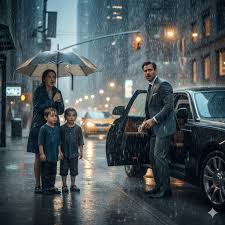 كانت كلارا واقفة تحت المطر، تحاول أن تخفي ارتجافها بينما يشدّ الطفلان طرف معطفها المبلل.