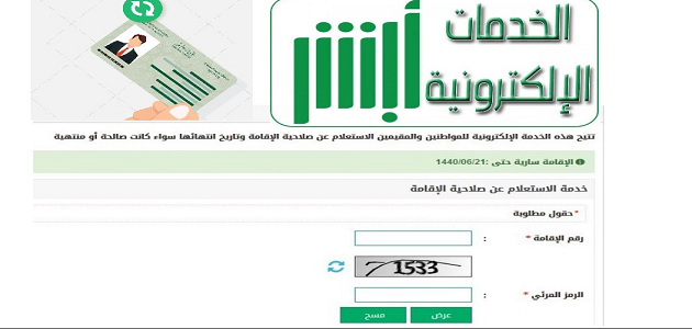 الاستعلام عن صلاحية الاقامة برقم الاقامة 1441 عبر منصة ابشر الجوازات
